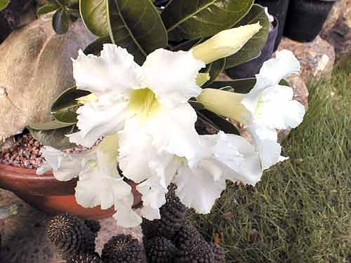 夕日に映える白い砂漠のバラ、アデニュウムです。