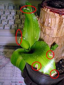 葉を伸ばしたところから、どんどん葉先が枯れてきます。(右)