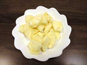 味は・・・・売っているパイナップルをすぐに食べた時の味でした。ちと2〜3日早かったかなって味でしたが小さくても大きなパイナップルと味は変わりませんでしたよ。 |