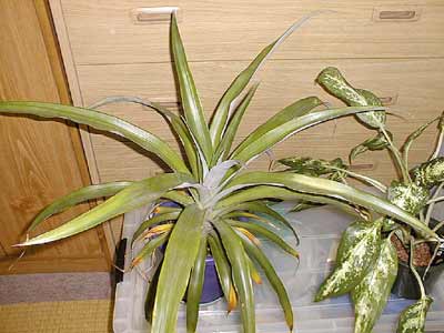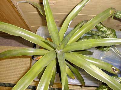 最近の最低気温は7度でしたので、CAM植物(夜間気孔を開く植物)のパイナップルにとっては夜の寒さは苦手だったのでしょう。