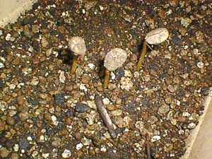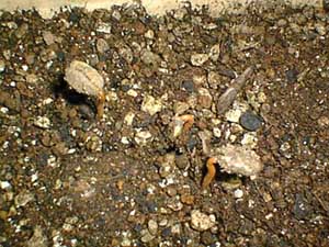 あのコーヒー豆から芽が出ました。ちょっとモヤシのようですが茶色い色をしています。