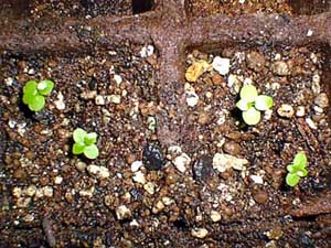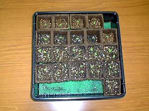 2000年になりました! 最初の発芽から一月です。今回は底面吸水マット付きの容器に植え替えました。