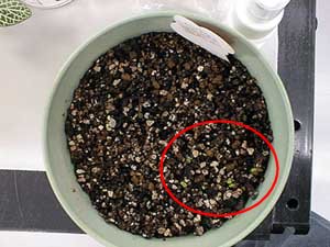 用土は、バーミキュライト5に赤玉土(小粒)5の割合です。