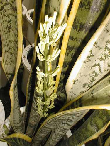 温室内のサンセベリアが開花していました。私は初めてこの花を見たのですが、寒さに弱いサンセベリアが開花するということは、とても良い状態なのでしょうね。